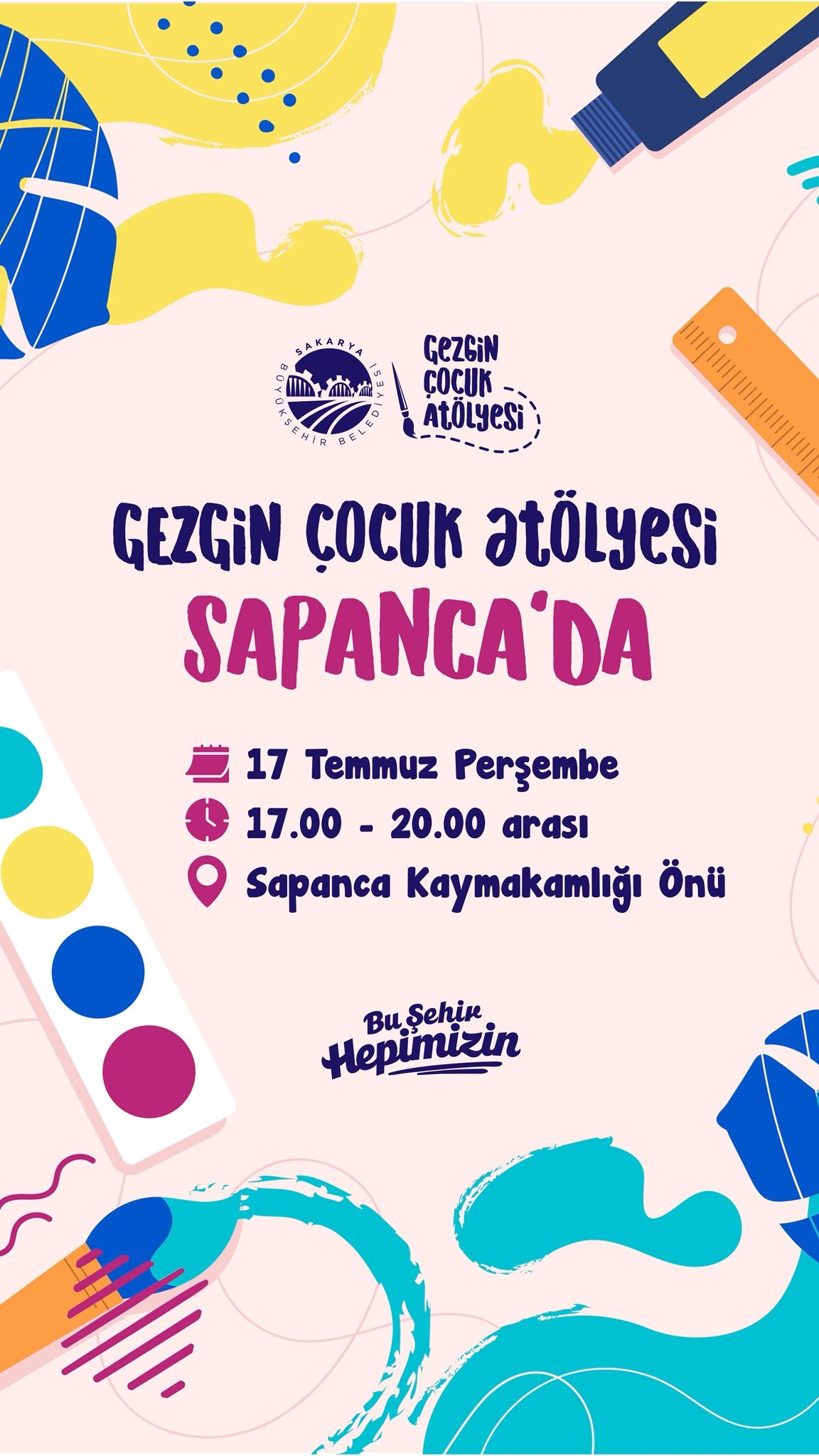 Sakarya Büyükşehir Belediyesi tarafından organize edilen "Gezgin Çocuk Atölyesi " Sapanca'da.. Tüm çocuklarımızı bekliyoruz..